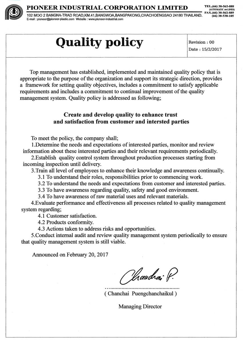 Pioneer Industrial Corporation Limited, a manufacturer and exporter of plastic kitchenware and houseware products, was established in 1978. The company grew quickly during the past two decades. Pioneer is today one of the largest plastic manufacturers and exporters in Thailand, employing over 1,000 staffs with over 130 machines running 24 hours a day to serve the global markets. Pioneer has its own mould-making facility designer to launch so many new stylish and unique products each year and to produce exclusive products according to customer's design specification. We now carry over 1,000 different products under our " PIONEER " brand name, currently export into 100 countries worldwide, mainly in Asia, especially in Asian and Middle East regions; also in Africa, U.S.A. and Europe.