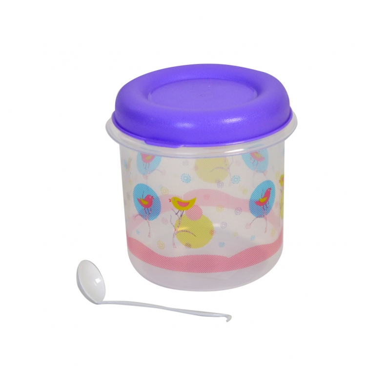 โหลกลมทรงกระบอก+ช้อน ลายเลิฟเบิร์ด