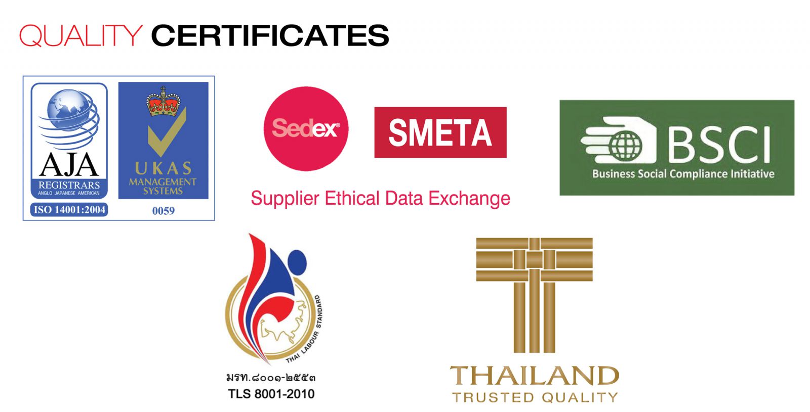 ISO 9002 in March 1999 ; Certification No. AJA 99/1359 ISO 14001 in February 2001 ; Certification No. AJA 01/3030 |